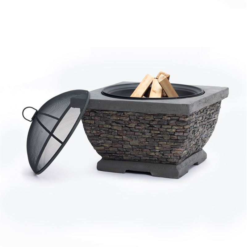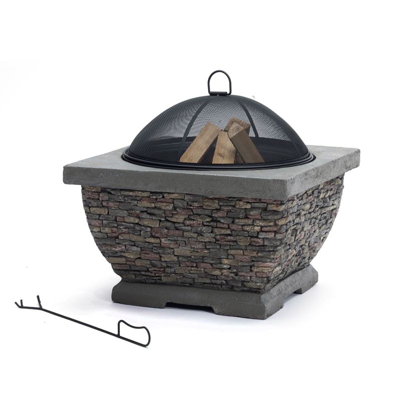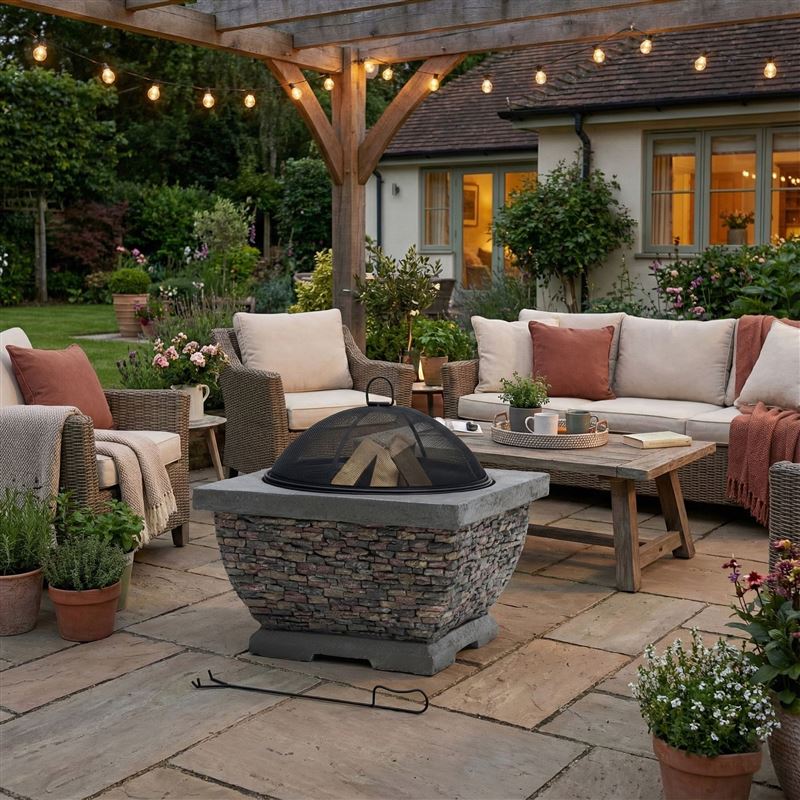Create a striking centrepiece in your garden with this premium square wood burning stone fire pit. Designed to combine visual appeal with practical performance, it features an elaborate stone-effect body that enhances patios, gardens and seating areas while providing the warmth and ambience of a real wood fire.