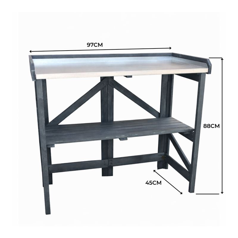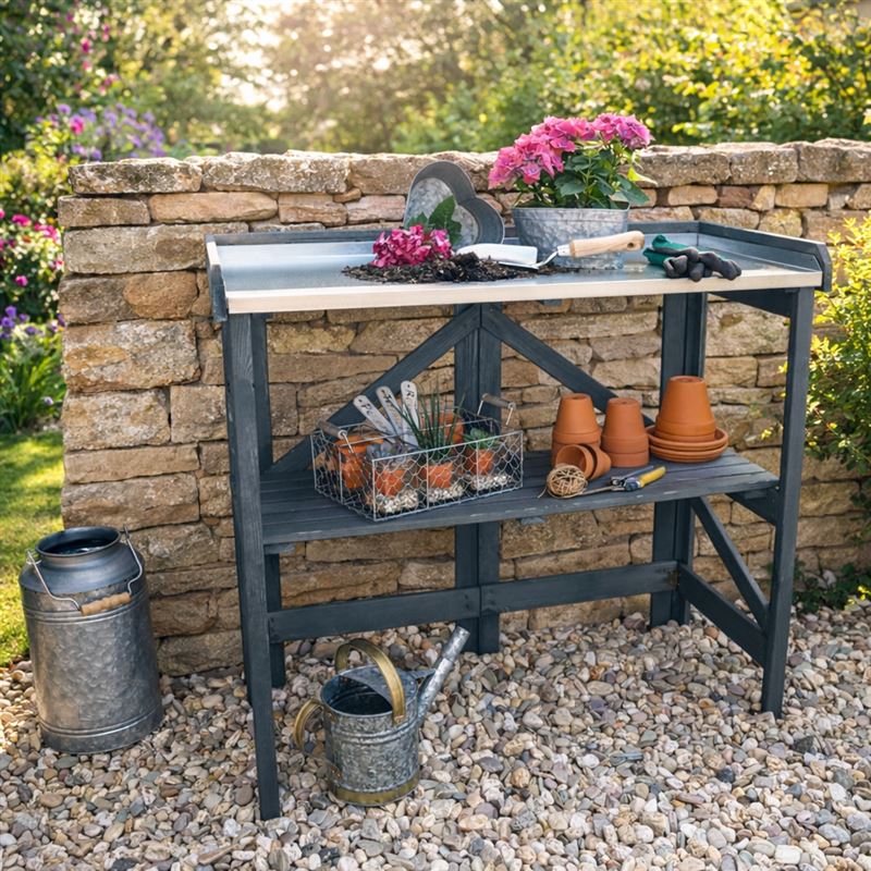 Garden Potting Table with Zinc Plated Worktop