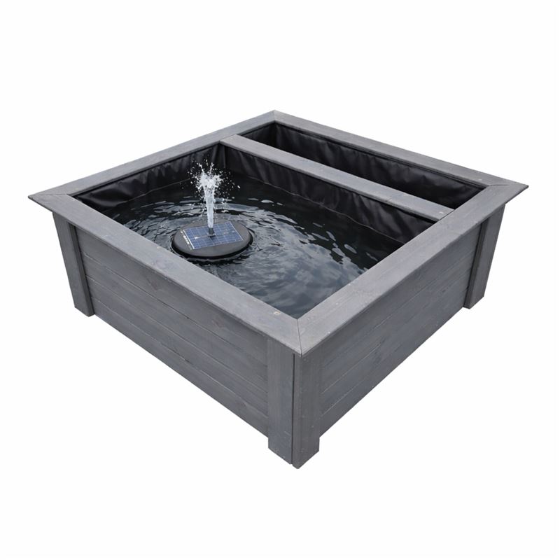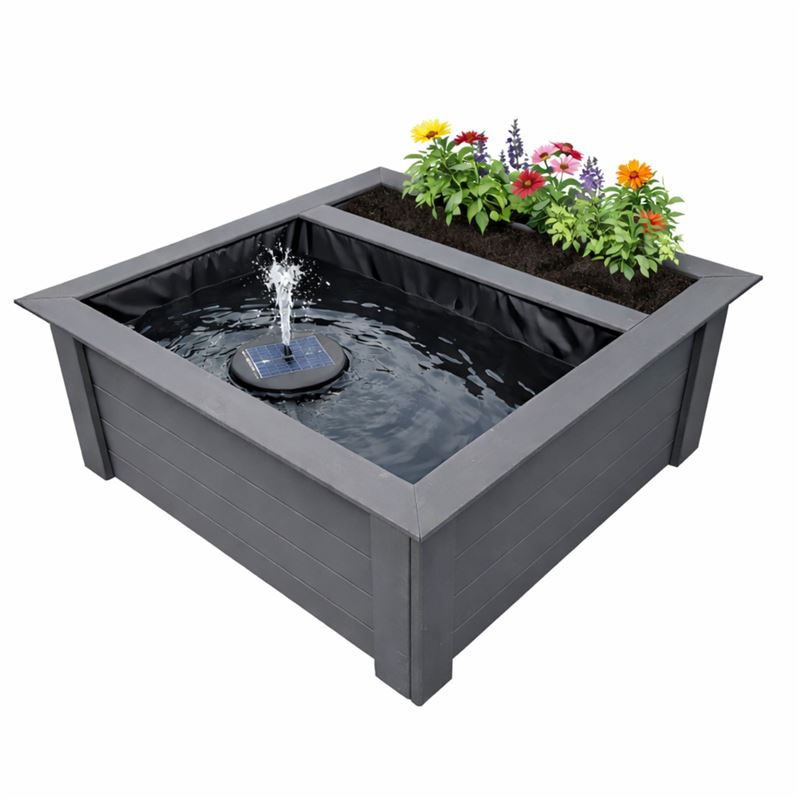Raised Square Solar Garden Pond & Pump Kit with Planting Zone in Grey
