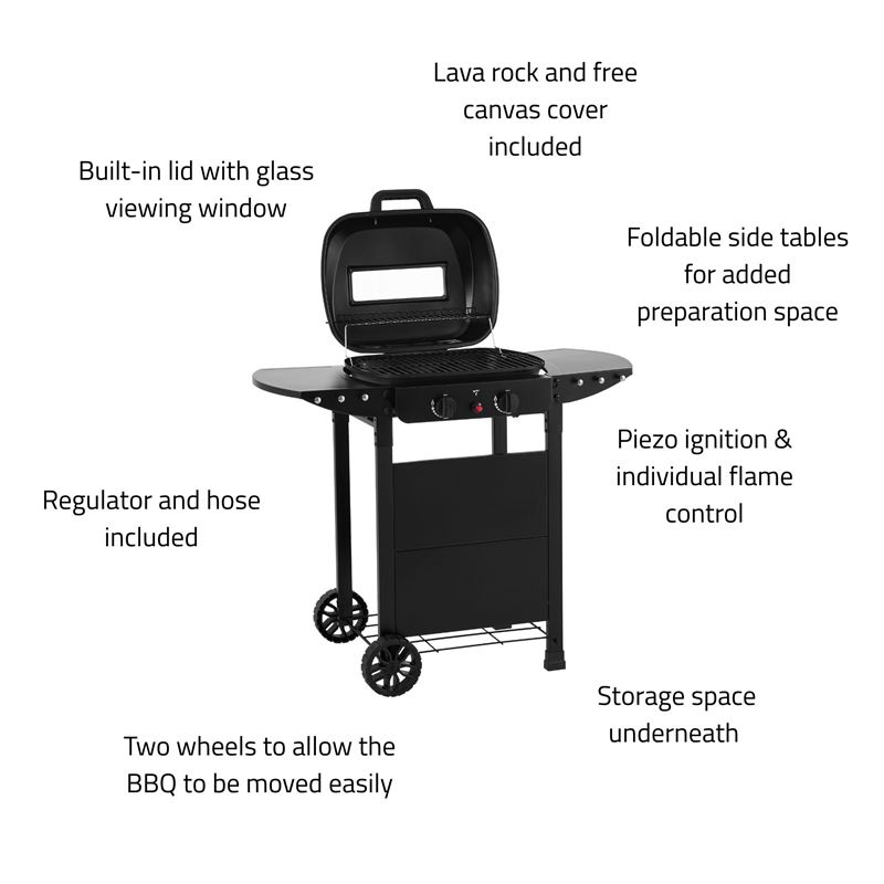 This 2 Burner Gas Grill BBQ with Cover and Lid offers a practical and well-designed solution for everyday outdoor cooking, combining reliable performance with thoughtful features to make barbecuing simple and enjoyable.