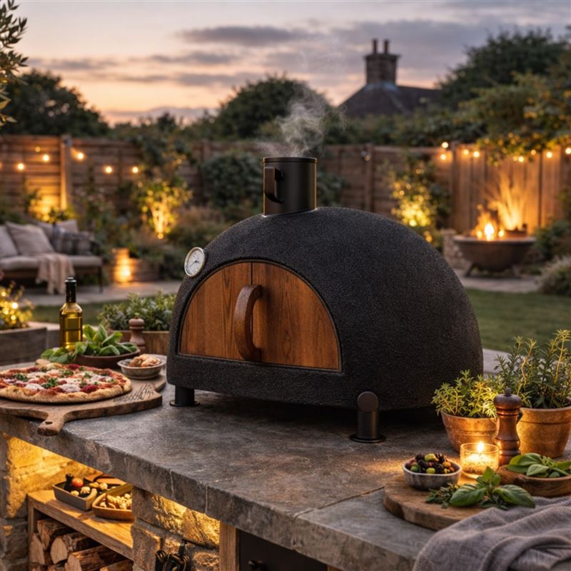 - Finished in Black - Authentic Handmade Clay Outdoor Oven – Traditional techniques since 1945 and High Performance wood fired Oven